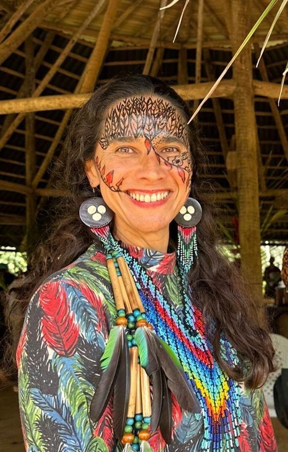 Ela é antropóloga, artista visual e produtora cultural, atuando com povos indígenas no Brasil há 18 anos. Fundadora e coordenadora da Arte Ameríndia, trabalha com projetos de valorização cultural, especialmente no fortalecimento do trabalho de mulheres indígenas como lideranças políticas e espirituais.
